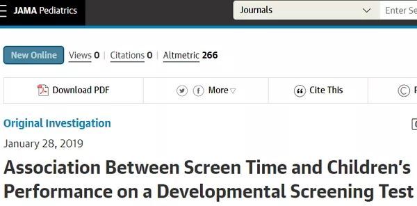 而且,2岁和3岁儿童“屏幕时间”越长,与3岁和5岁的发育筛查试验表现越差有关。也就是说,2-3岁的儿童“屏幕时间”过多与其语言、运动等技能发育缺陷和延迟有关。