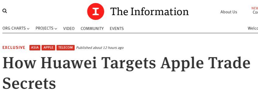 【新智元导读】The Information发布报告对华为进行指控,称其采取“可疑策略”来窃取苹果相关商业/技术机密。报告中称,华为先是佯装交易,再借机窃取机密。华为予以否认,苹果公司不予置评。