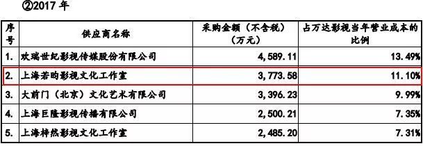 2007年,向上海若昀影视文化工作室支付《亲爱的她们》服务费3773.58万,张若昀是该剧主演,服务费理解为片酬。