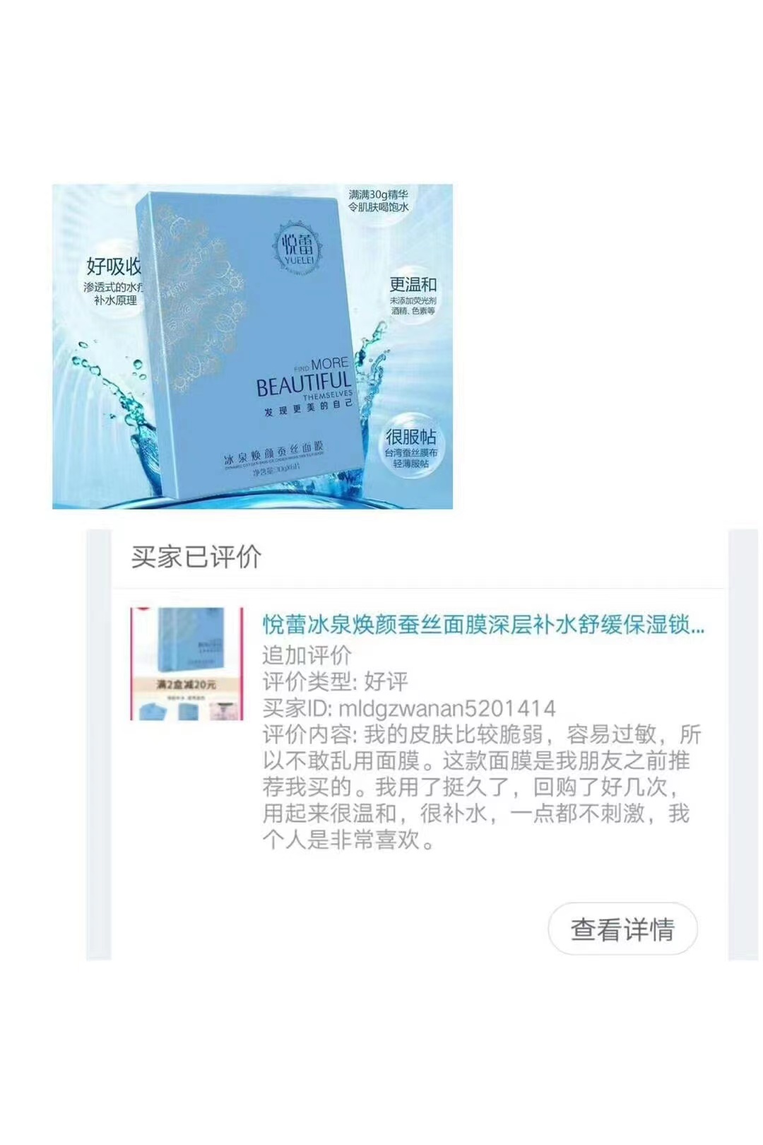 补水嫩肤面膜口碑推荐 >>> 悦蕾冰泉焕颜蚕丝面膜
