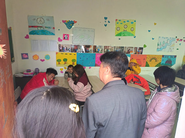 最后,大家还参观了教职工和学生宿舍及停建的澡堂,查看了几名智障孩子的生活情况。