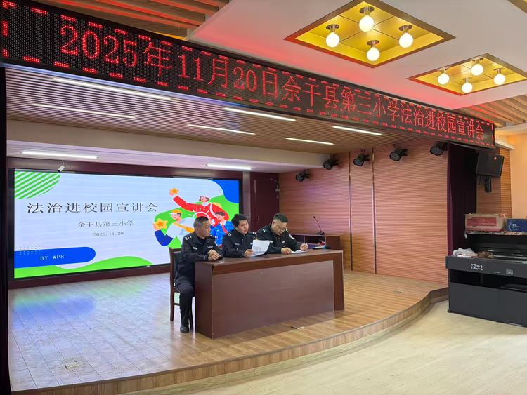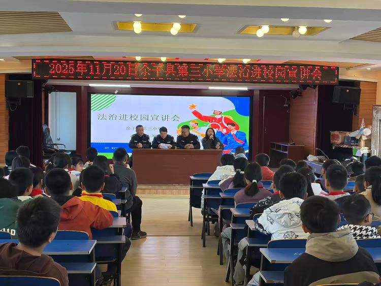 11月20日,余干县第三小学举行“法治进校园”宣讲会,旨在增强学生法治观念与安全意识,为青少年健康成长筑牢安全屏障。