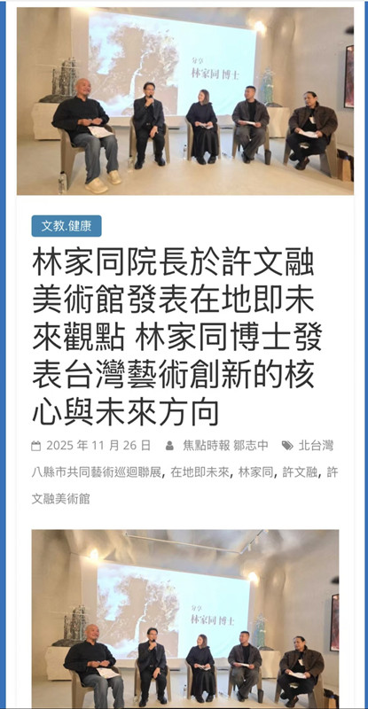 杰出艺术家林家同院长发表「在地即未来」艺术观,振奋人心!