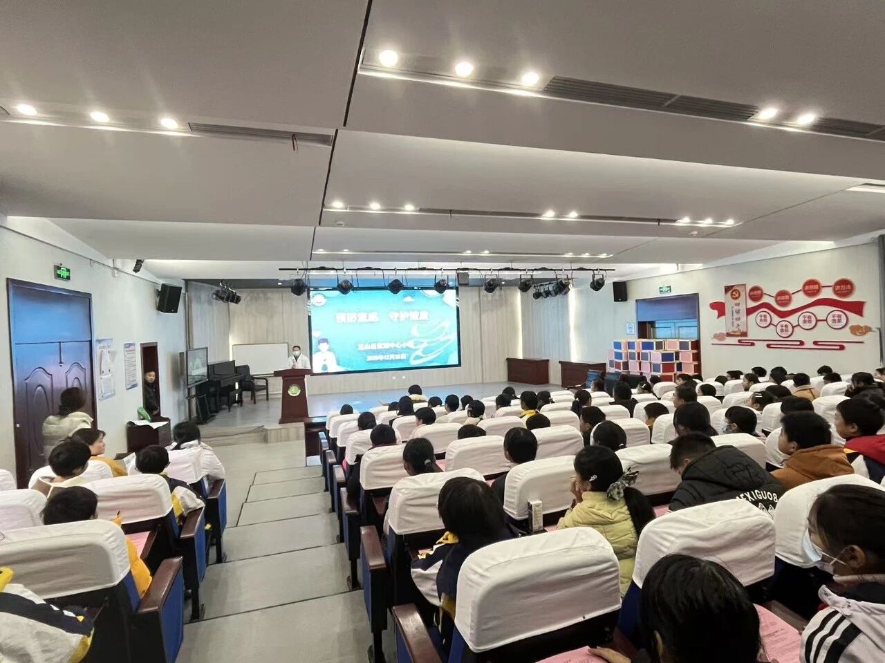 聘任仪式后,新任健康副校长以“预防流感 守护健康”为主题开展宣讲。他指出,校园易成为传染病高发地,主要因人群密集接触频繁、儿童免疫力较弱、冬季室内通风不足及学生防护习惯待养成等。他特别强调,流感并非普通感冒,具有传染性强、传播快的特点,还可能引发肺炎、心肌炎等严重并发症,影响教学秩序与学生身心健康。