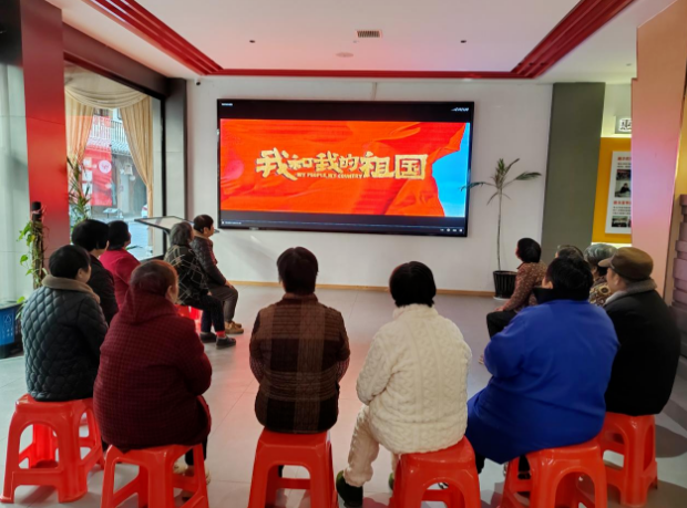 “看到国旗升起来的那一刻,我眼泪直打转。”观影结束后,李大姐站起身分享感受。“这几十年变化多大啊,都是国家强了,咱们日子才越来越好。”她的话引发共鸣,大家你一言我一语,说变化、谈感受,大家话语里满是对国家的自豪。