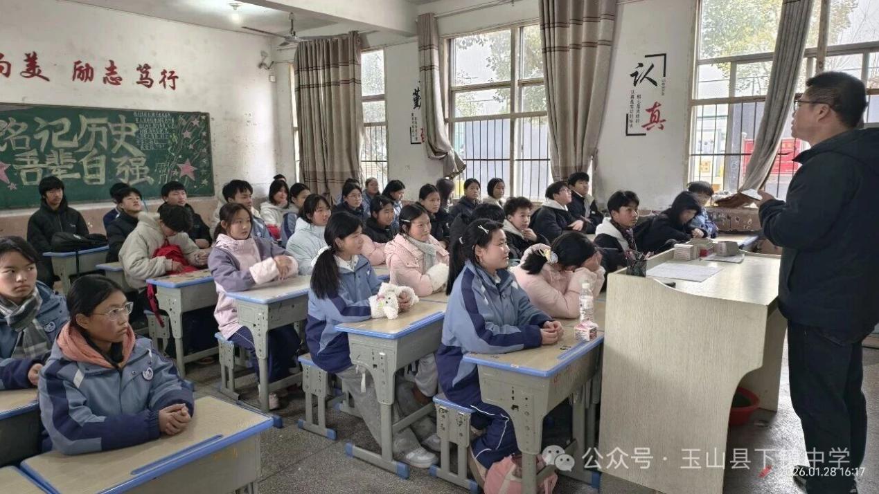 寒假将至,为增强学生法治观念,提升自我保护意识,切实筑牢校园安全防线,保障学生在假期期间的身心健康与生命财产安全,1月28日中午,玉山县下镇初级中学法治副校长、下镇派出所相关负责人来到学校开展寒假前安全教育活动。