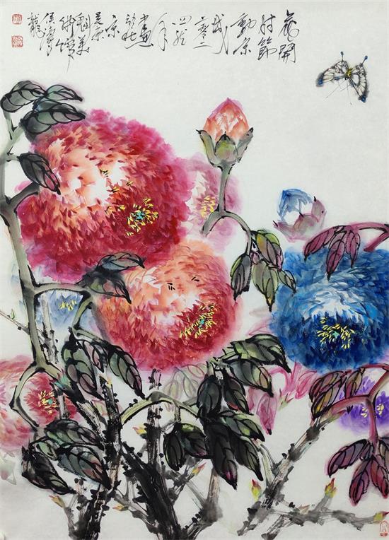 2014年8月作品《财源滚滚》入选第七届全国当代著名花鸟画展"获佳作奖。